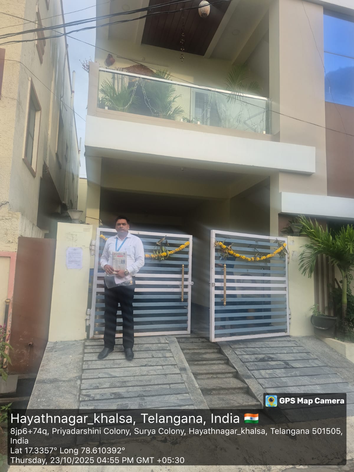 All that Piece and Parcel of constructed House consisting Stilt Floor and First Floor Constructed on Plot No.117 (Southern Part) admeasuring 50 Sq.Yards and Plot No. 119 (Northern Part) admeasuring 119 Sq. Yards, total admeasuring 169 Sq Yards or its equivalent to 141.28 Sq Metres, having plinth area of 1903.28 Sft.,(Stilt floor: 916.66 Sft.and First Floor 986.62 Sft) with RCC Roofing in SURVEY Nos 178 (Part) 206/1 and 206/2 situated at PRIYADARSHINI COLONY of BAGH HAYATH NAGAR VILLAGE, Hayath Nagar Revenue Mandal, Ranga Reddy District, under Ward No.4 Block No.9 of GHMC, HayathNagar Circle under Registration Sub District HayathNagar and Bounded by North: Plot No. 117 (Northern Part) South: Plot No. 119 (Southern Part) East: Plot No. 118 and 120 West: 30 Ft Wide Road