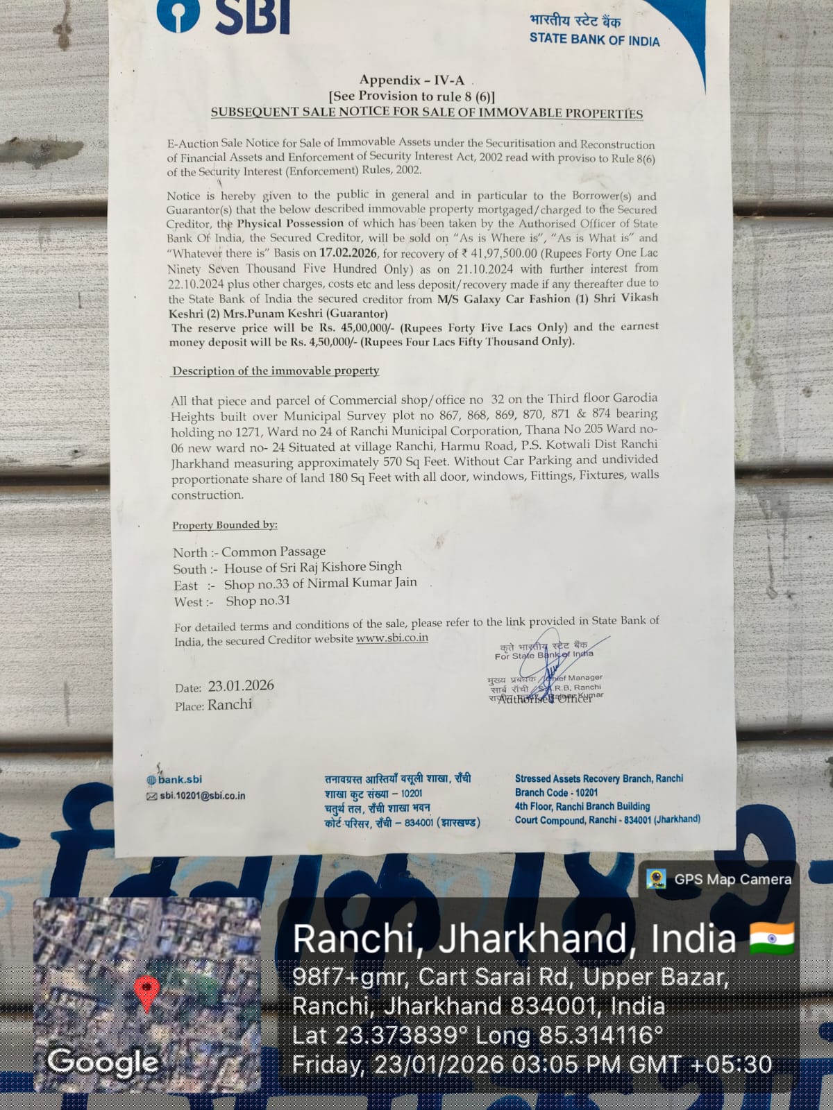 State Bank of India Auctions for Commercial property in Ranchi, Jharkhand