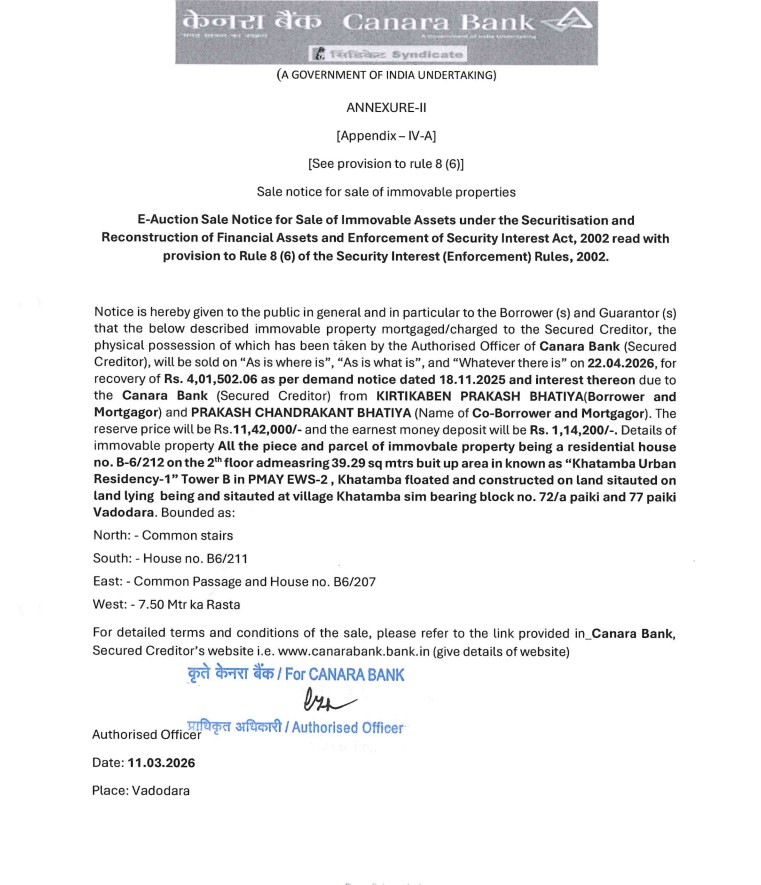 Canara Bank Auctions for Residential property in Vadodara, Gujarat